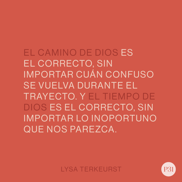 El sufrimiento es nuestro recordatorio de permanecer más cerca de Dios que nunca y no resistirnos a Su dirección. El camino de Dios es el correcto, sin importar cuán confuso se vuelva durante el trayecto. Y el tiempo de Dios es el correcto, sin importar lo inoportuno que nos parezca.