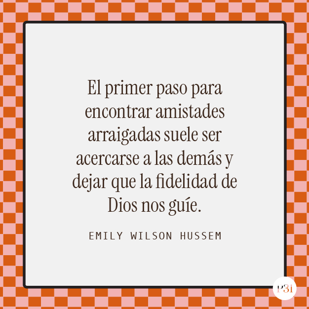 Dios quiere liberarte de las mentiras. Quiere que sepas y creas que la comunidad y la verdadera amistad son para ti. En esta nueva libertad y creencia que experimenté, me di cuenta de que la amistad no aparecería, así como así en mi puerta. El primer paso para encontrar amistades arraigadas suele ser acercarse a las demás y dejar que la fidelidad de Dios nos guíe.