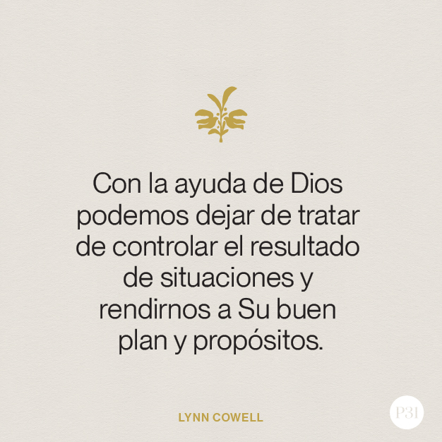 Tú y yo podemos pasar tiempo con el Padre, aprendiendo Su Palabra, escuchando Su voz llena de ternura animándonos y capacitándonos para confiar en Él, especialmente cuando la obediencia es difícil. Él no se enoja cuando luchamos, sino que está aquí para ayudarnos a dejar de tratar de controlar el resultado y rendirnos a Su buen plan y propósitos.