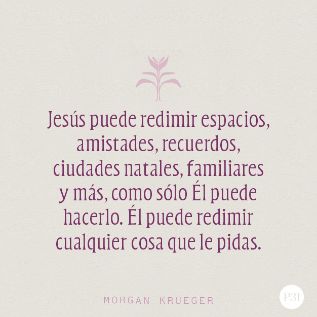Amiga, revive esos recuerdos con Jesús. Déjalo redimir espacios, amistades, recuerdos, ciudades natales, familiares y más, como sólo Él puede hacerlo. Tú lo nombras, y Él puede redimirlo.