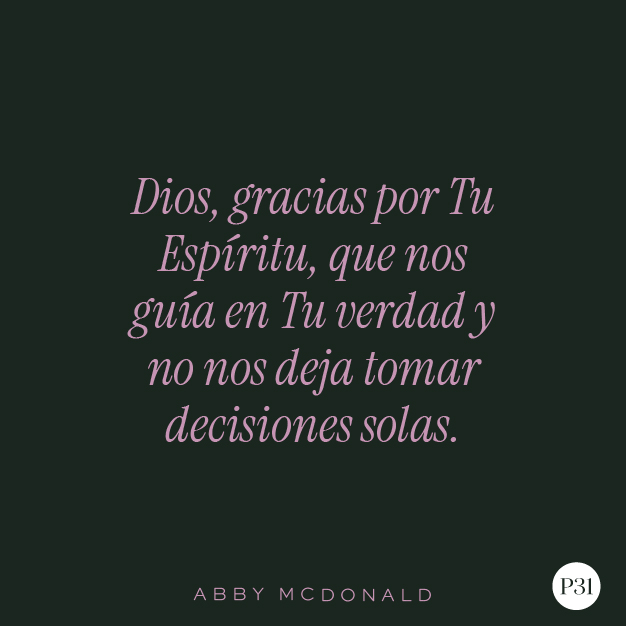 Dios, gracias por Tu Espíritu, que nos guía en Tu verdad y no nos deja tomar decisiones solas. Ayúdanos a poner a prueba las voces que escuchamos, probándolas con la certeza de Tu Palabra. En el Nombre de Jesús, Amén.