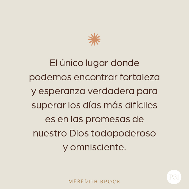 El único lugar donde he encontrado fortaleza y esperanza verdadera para superar los días más difíciles es en las promesas de nuestro Dios todopoderoso y omnisciente.