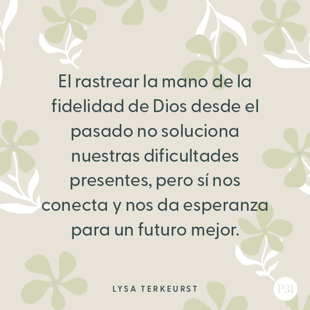 Amiga, si tienes dificultades para enfrentar cada nuevo día, debes saber que te entiendo demasiado bien. Todavía tengo que aplicar esto de nuevo. Esto es lo que quiero que recordemos: trazar la fidelidad de Dios desde el pasado no soluciona nuestras dificultades actuales, pero si nos arriaga y nos da un poco más de fuerza para hoy y esperanza para un futuro mejor.