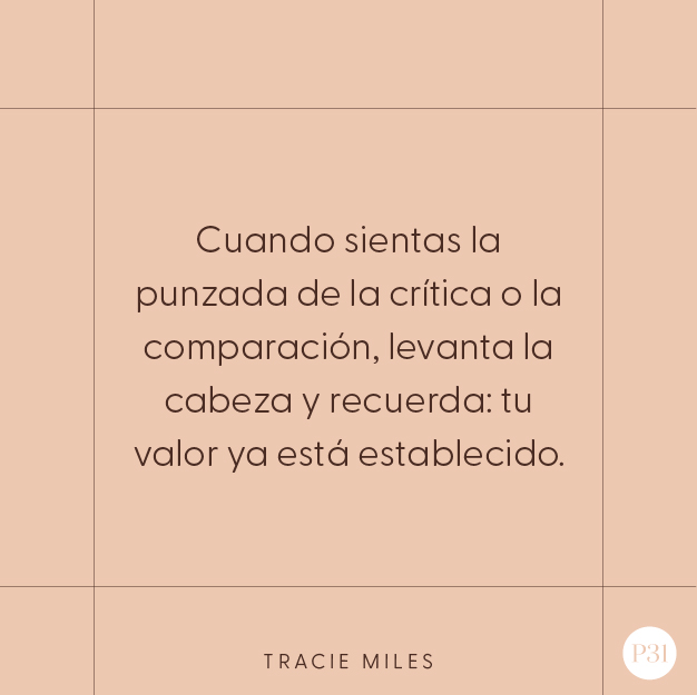 Fuiste creada intencional y maravillosamente por el Creador del universo, y nada de lo que diga otra persona puede cambiar eso. Así que, cuando sientas la punzada de la crítica o la comparación, levanta la cabeza y recuerda que tu valor ya está fijado.