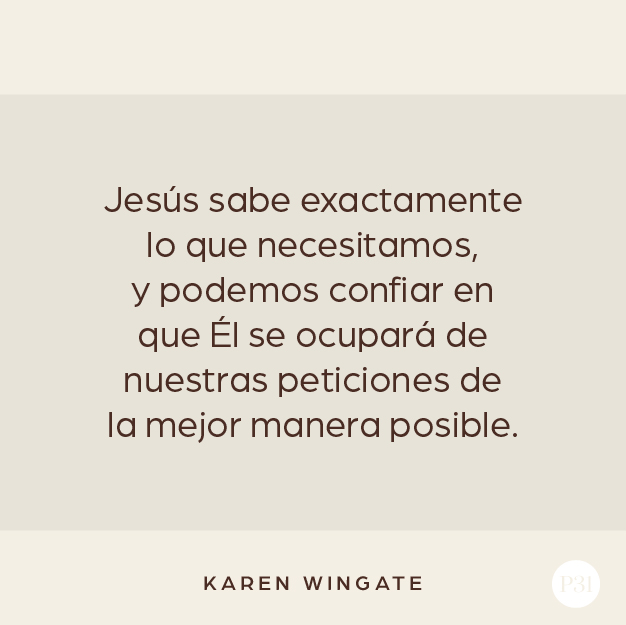 Mientras seguía siendo plenamente Dios, Jesús eligió hacerse humano como nosotras, por eso sabemos que Él comprende lo que es ser dependientes, limitadas y estar bajo el cuidado de otra persona. La belleza de la experiencia humana de Jesús es esta: Su empatía por nuestras debilidades hace que nos resulte mucho más fácil pedirle cualquier cosa (Hebreos 4:15-16). Él no nos tratará con condescendencia, ni examinará minuciosamente nuestras peticiones, ni minimizará nuestras necesidades. Jesús se hizo débil para que podamos encontrar nuestra fuerza en Él (2 Corintios 13:4). Él sabe exactamente lo que necesitamos, y podemos confiar en que Él se ocupará de nuestras peticiones de la mejor manera posible.