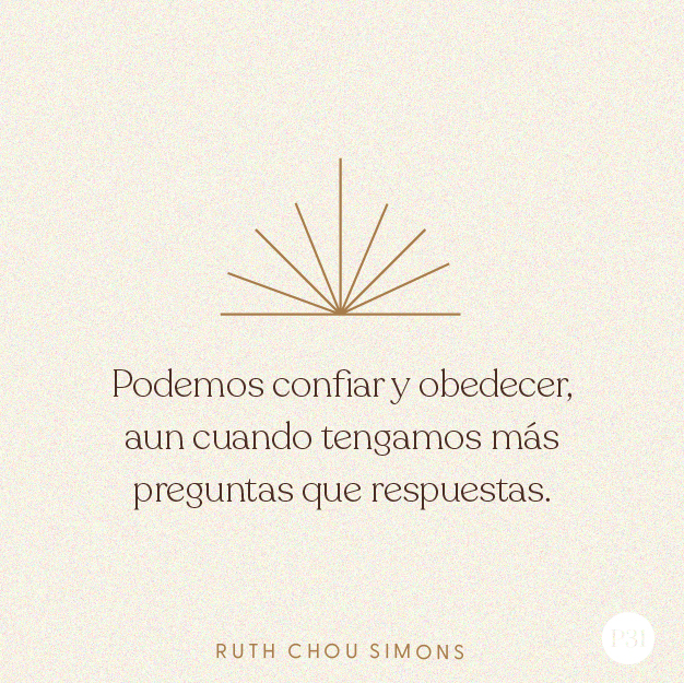 Sin importar las buenas nuevas de gozo que recibamos, depende de nosotras confiar en el plan santo y perfecto de Dios. Aun cuando tengamos más preguntas que respuestas, siempre podemos confiar y obedecer. No necesitamos entender a la perfección el plan perfecto siempre y cuando sigamos el camino de nuestro Salvador perfecto.