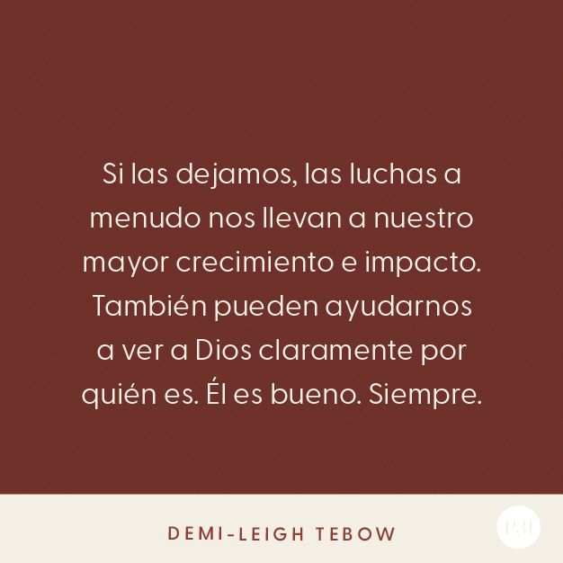Si lo permitimos, las luchas a menudo nos llevan a nuestro mayor crecimiento e impacto. También pueden ayudarnos a ver a Dios claramente por Quién es. Él es bueno. Siempre.