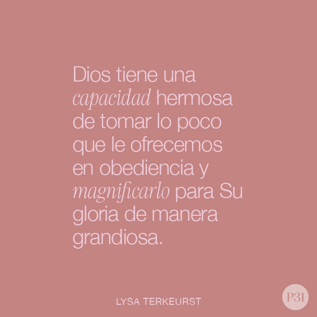 Dios tiene la capacidad hermosa y poderosa de tomar lo poco que le ofrecemos en obediencia y magnificarlo para Su gloria de manera grandiosa.