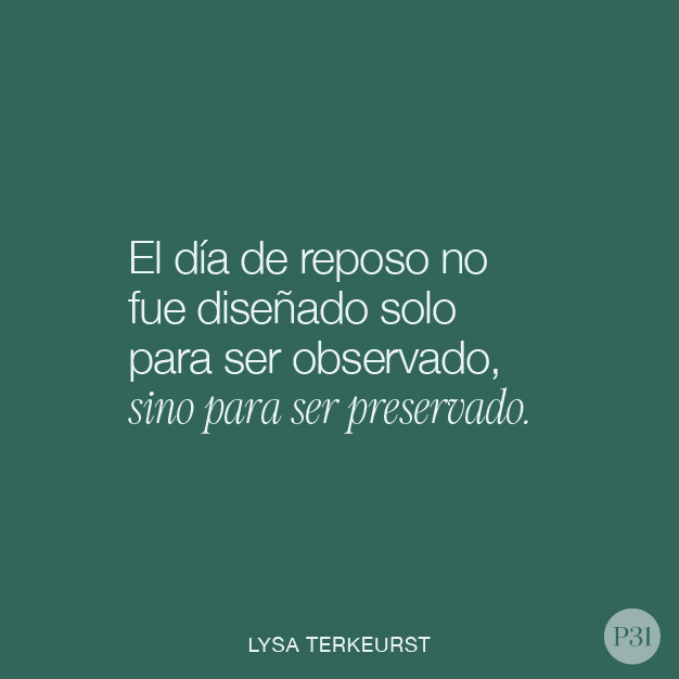 Sin embargo, la Biblia es muy clara en que debemos honrar el día de reposo y buscar el descanso. Dios nos dice que presionemos el botón de pausa de la vida una vez a la semana y protejamos nuestra necesidad de descansar. Protegerla apasionadamente. Protegerla intencionalmente. Protegerla incluso cuando nuestros compromisos nos ruegan que hagamos lo contrario.