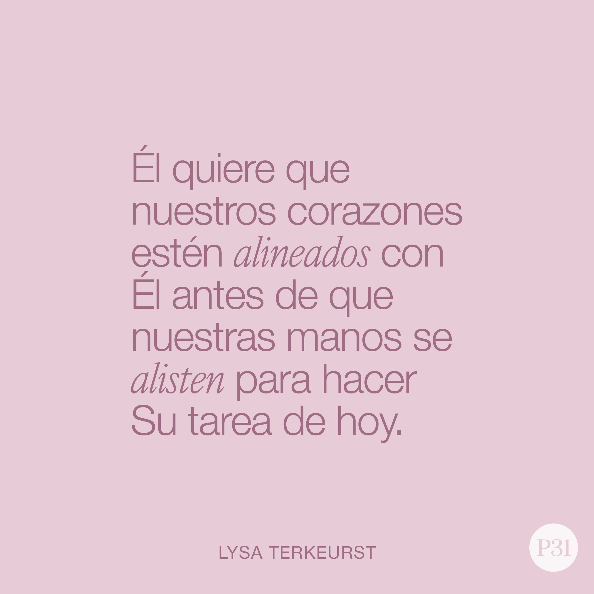 La verdadera plenitud viene cuando nos acordamos de estar con Jesús antes de salir a servirlo. Él quiere que nuestros corazones estén alineados con Él antes de que nuestras manos se alisten para hacer Su tarea de hoy.