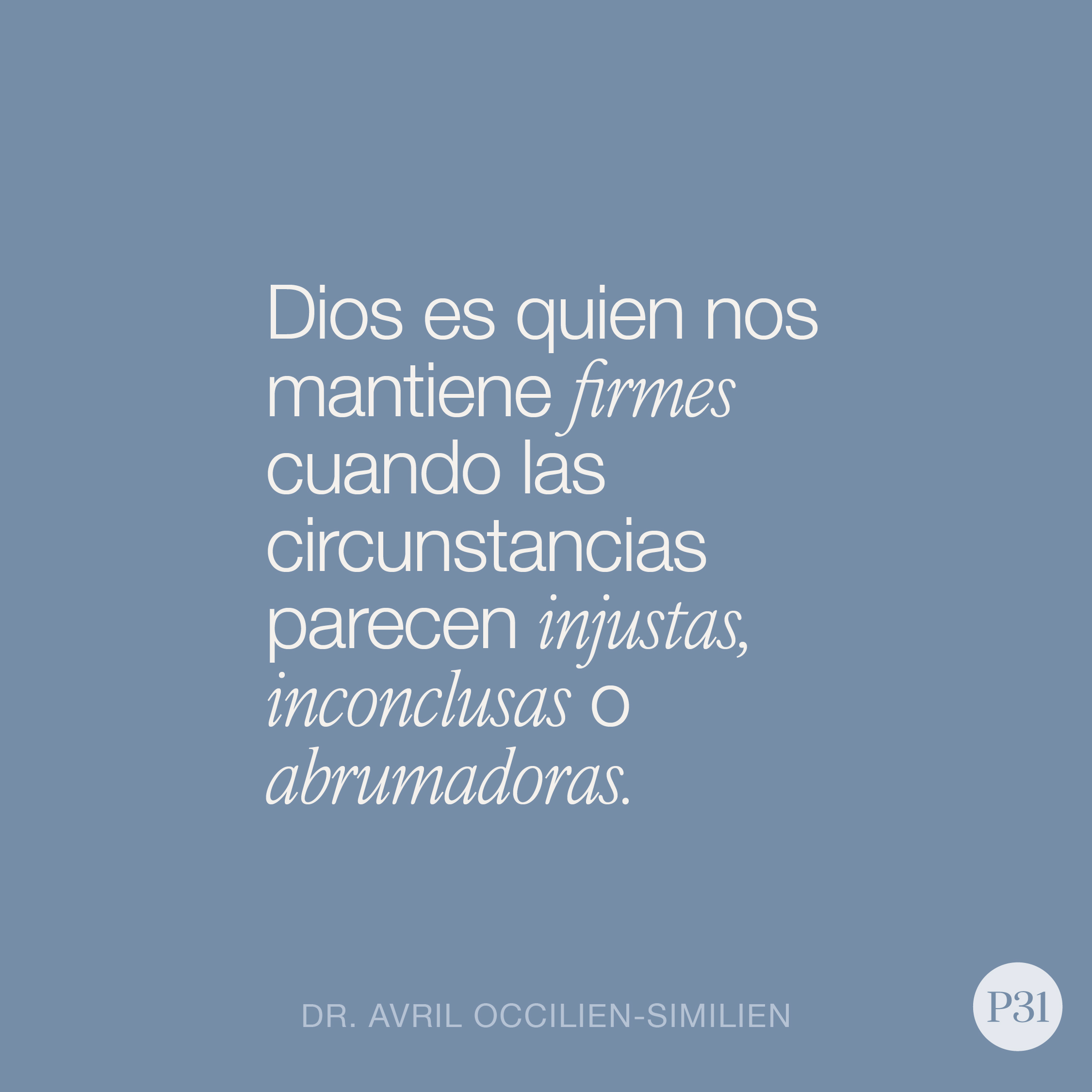 Él es Quien nos mantiene firmes cuando las circunstancias parecen injustas, inconclusas o abrumadoras. Amiga, cuando la vida se ve sacudida por las tormentas, cuando las emociones se descontrolan, cuando aparece el temor o la duda, cuando la inseguridad empieza a asomar, lo siguiente es un recordatorio para ti y para mi: ten esperanza en Cristo.