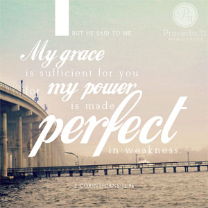 "But he said to me, 'My grace is sufficient for you, for my power is made perfect in weakness.' Therefore I will boast all the more gladly about my weaknesses, so that Christ's power may rest on me." 2 Corinthians 12:9 (NIV)