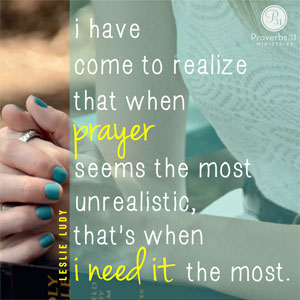 But I have come to realize when prayer seems the most unrealistic, that's when I need it the most. In fact, the "Too busy NOT to pray" principle has revolutionized my life.
