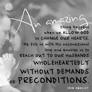 An amazing thing happens when we allow God to change our hearts. He fills us with His unconditional love and enables us to reach out to our husbands wholeheartedly without demands or preconditions.