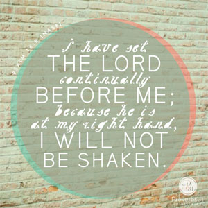 "I have set the LORD continually before me; Because He is at my right hand, I will not be shaken." Psalm 16:8 (NASB)