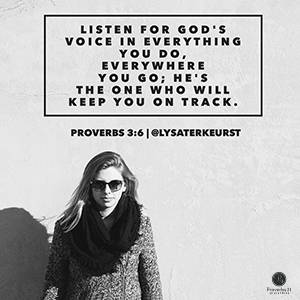 "Listen for GOD’S voice in everything you do, everywhere you go; he’s the one who will keep you on track." Proverbs 3:6 (MSG)