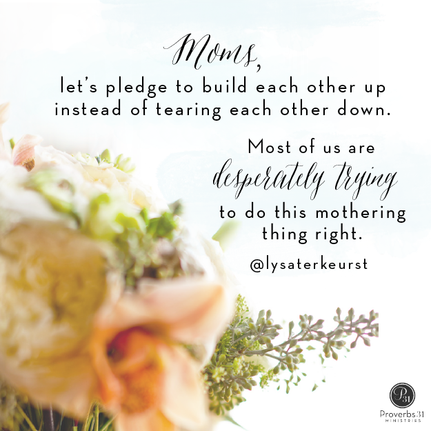Moms, let's pledge to build each other up instead of tearing each other down. Most of us are desperately trying to do this mothering thing right.