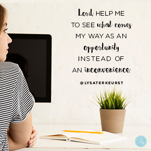 Help me to embrace what comes my way as an opportunity - rather than a personal inconvenience.