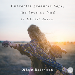 Character also produces hope, the hope we find in Christ Jesus. That’s the hope He gave us when He died and rose from His grave three days later. We, too, can have a new body, one that will live eternally with our Father in heaven.