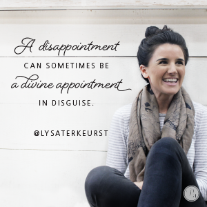 Father God, thank You for using all things for my good, even disappointment. Help me to look at my disappointments with fresh eyes today, discovering gifts where I am tempted to only see heartache. And show me how I can love and serve others with passion and purpose - right where I am. In Jesus' Name, Amen.