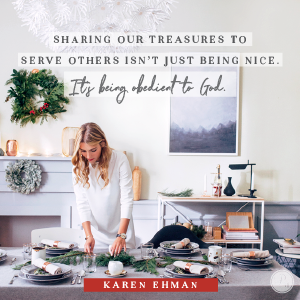 For practical ideas for using your gifts and passions to bless and serve others, grab a copy of Karen Ehman’s newest book Listen, Love, Repeat: Other-Centered Living in a Self-Centered World.