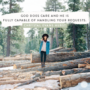 If you desire to have a more consistent and intentional prayer life, Chrystal has designed a free 7-Day Prayer Journey to help you talk to God about what concerns you. CLICK HERE to download a tool that will help you cast your cares on Him.