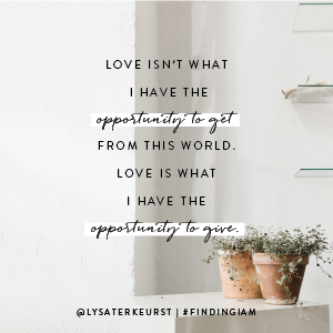 Love isn’t what I have the opportunity to get from this world. Love is what I have the opportunity to give.