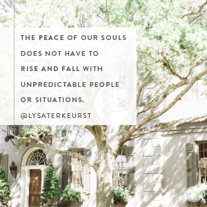 The peace of our souls does not have to rise and fall with unpredictable people or situations. Our feelings will shift, of course. People do affect us. But the peace of our souls is tethered to all that God is. And though we can’t predict His specific plans, the fact that God will work everything together for good is a completely predictable promise.