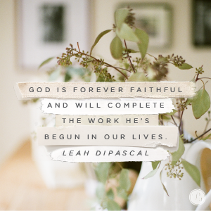 What are some things that concern you today? List them on a piece of paper, then write out a prayer asking God to perfect your concerns with His unfailing love and grace. Finally, declare out loud Philippians 1:6 (above) with confidence and assurance until your heart believes it.