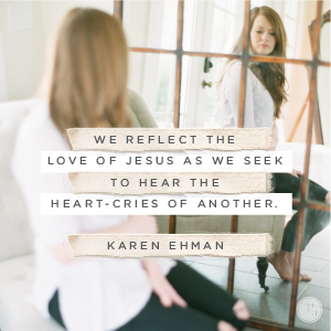 But often God uses people to hear the cries of other people and respond with sincere love and care, to reach out and hearten another soul. If we will only learn to pay attention, to live alert. We can purpose to listen between the spoken words to understand what others are really feeling — and what they are trying to say. We reflect the love of Jesus as we seek to hear the heart-cries of another.