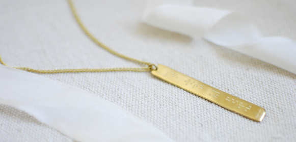 Are you or a friend dealing with that kind of a situation where you’re trusting God for something "in the course of time”? We know how incredibly hard that can be. That’s why we are offering these hammered pendant necklaces with the phrase “See With My Heart” written in braille.