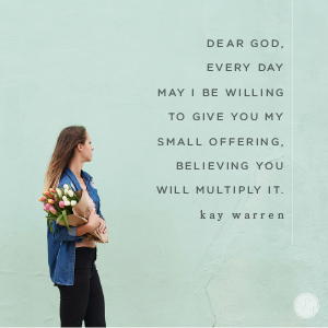 Dear God, I delight in the knowledge that You have chosen me to be who I am and that You love me exactly as I am. Every day may I be willing to give You my small offering, believing You will multiply it in ways that bring glory to Your name. In Jesus’ Name, Amen.