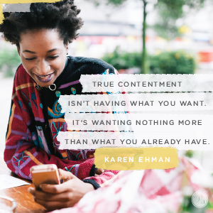 So the next time we are tempted to come apart at the “seems” while staring at the pics on our phone, let’s log off for a moment — or a week! — and start counting our many blessings. May we be grateful to God for what we do have, and stop wanting someone else’s life. Then, we’ll discover that true contentment isn’t having what you want. It is wanting nothing more than what you already have.
