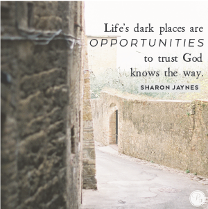 Oh that we would trust Him even if the twists and turns never make sense this side of heaven. That’s what trusting God is all about. As we live and move and have our being in Him, life’s dark places are simply opportunities to trust that God knows the way — and the perfect time to hold on tight.