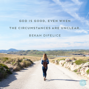 Like Ruth, we’re often compelled to go somewhere new without knowing what waits on the other side. Rarely do we have a divine explanation as to how this moment will work out when we travel toward the unknown. Still, we walk toward the promise that God is good, even when the circumstances are unclear.