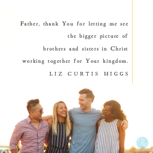 Heavenly Father, I’m grateful You allowed me to see the bigger picture. To capture a clearer vision of brothers and sisters in Christ working together for Your kingdom. Even as women minister to one another, remind us to value the men who are also helping us grow into the image of Your Son. In Jesus’ Name, Amen.