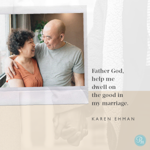 Father God, help my mind dwell on the good aspects of my spouse and my marriage, rather than focus on whatever falls short. In Jesus’ Name, Amen.