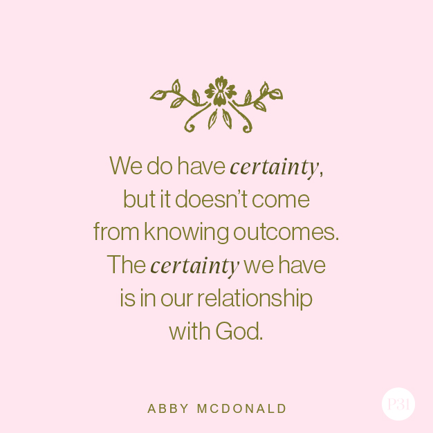 Have you ever felt like God was prompting you to do something but questioned whether it was His voice? Abby’s new book, Surrendering Certainty, explores how to grow in confidence that we can hear God without second-guessing ourselves. Order your copy here!