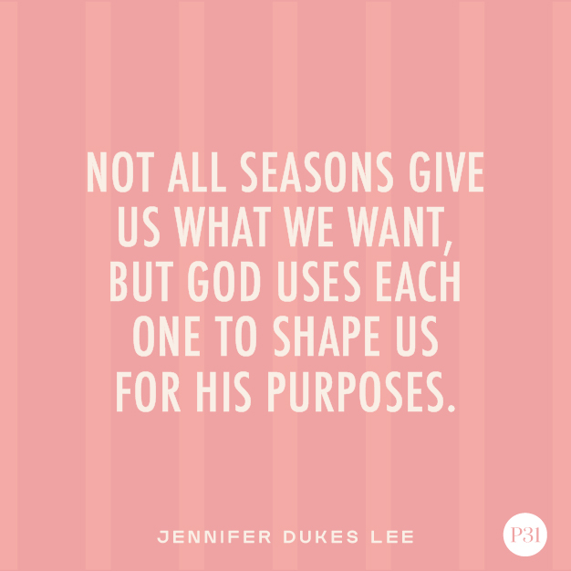 Those seasons are filled with ups and downs: mourning, dancing, weeping, laughing, planting, and uprooting (Ecclesiastes 3:2-8). Not all seasons give us what we want, but God uses each one to shape us for His purposes.