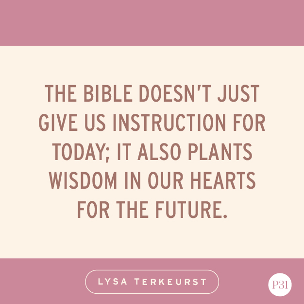 When we’re in these desperate places, we may simply want God to rain down right-now wisdom, answers, and solutions for what’s breaking our hearts, but spending time in God's Word actually offers us so much more. You see, the Bible doesn’t just give us instruction for today; it also plants wisdom in our hearts for the future.