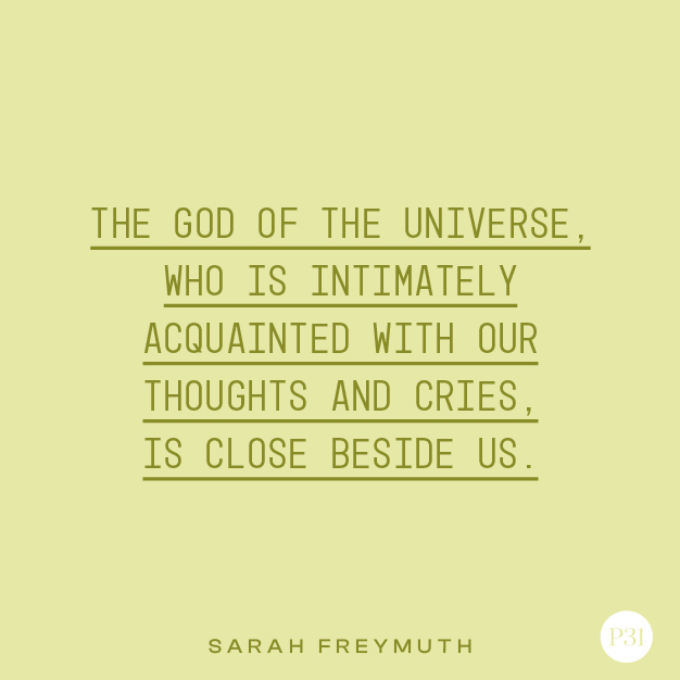 But the God of the universe, who is intimately acquainted with our thoughts and cries, is close beside us. He longs to show us mercy in His perfect timing and in His perfect way.
