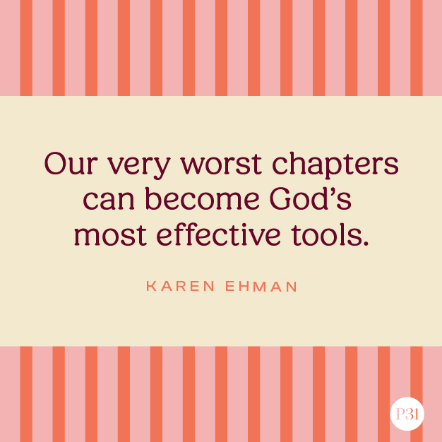 Our very worst chapters can become God’s most effective tools. The one who once struggled with insecurity can become the one who instills confidence in others. The person who was caught in the grip of a certain sin can become the one who guides others to freedom. The student who struggled with a learning challenge can become the teacher who patiently helps her students successfully grow and thrive.