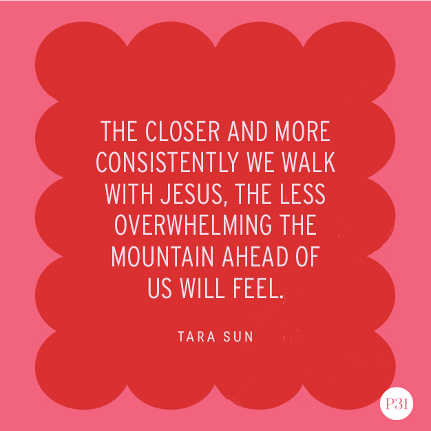 Friend, there is grace anew each day. Seek out regular checkpoints throughout your busy days to say a prayer, recite Scripture through stress, or absorb God’s Truth on a break or while your children play. The closer and more consistently we walk with Jesus, the less overwhelming the mountain ahead of us will feel.