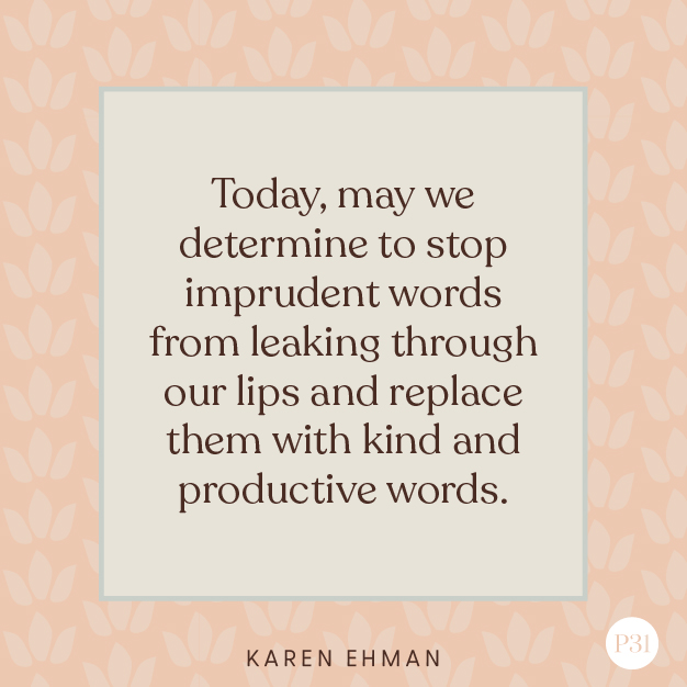Today, may we determine to stop imprudent words from leaking through our lips, instead hedging them in at the thought stage and then replacing them with kind and productive words — or even occasionally with blessed silence.