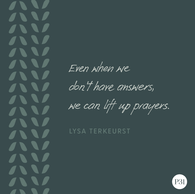 I finally said, “I don’t have answers but I do have prayers. And I’m going to write out conversations I have with God on your behalf so you’ll know He’s not being silent right now. He sees you. He hears you. And through His Truth, He will comfort you."