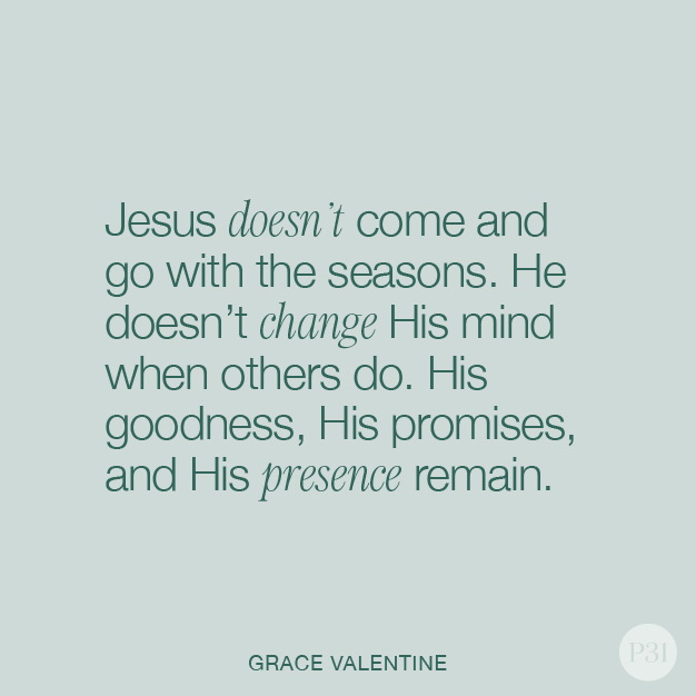 Even when everything around us shifts, we still have a steady foundation. He doesn’t come and go with the seasons. He doesn’t change His mind when others do. His goodness, His promises, and His presence remain.