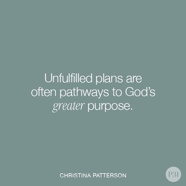 Unfulfilled plans are often pathways to God’s greater purpose. When our focus is on God’s purpose over our plans, we are freed from the pressure they create. We release the urge to do everything at once and the frustration when we realize we can’t.