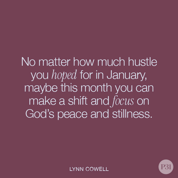 No matter how much hustle you hoped for in January, maybe this month you can make a shift and focus on God’s peace and stillness. Whether you and I hit our goals or not, let’s redefine our Februarys. God’s peace is still there for us, along with His love.