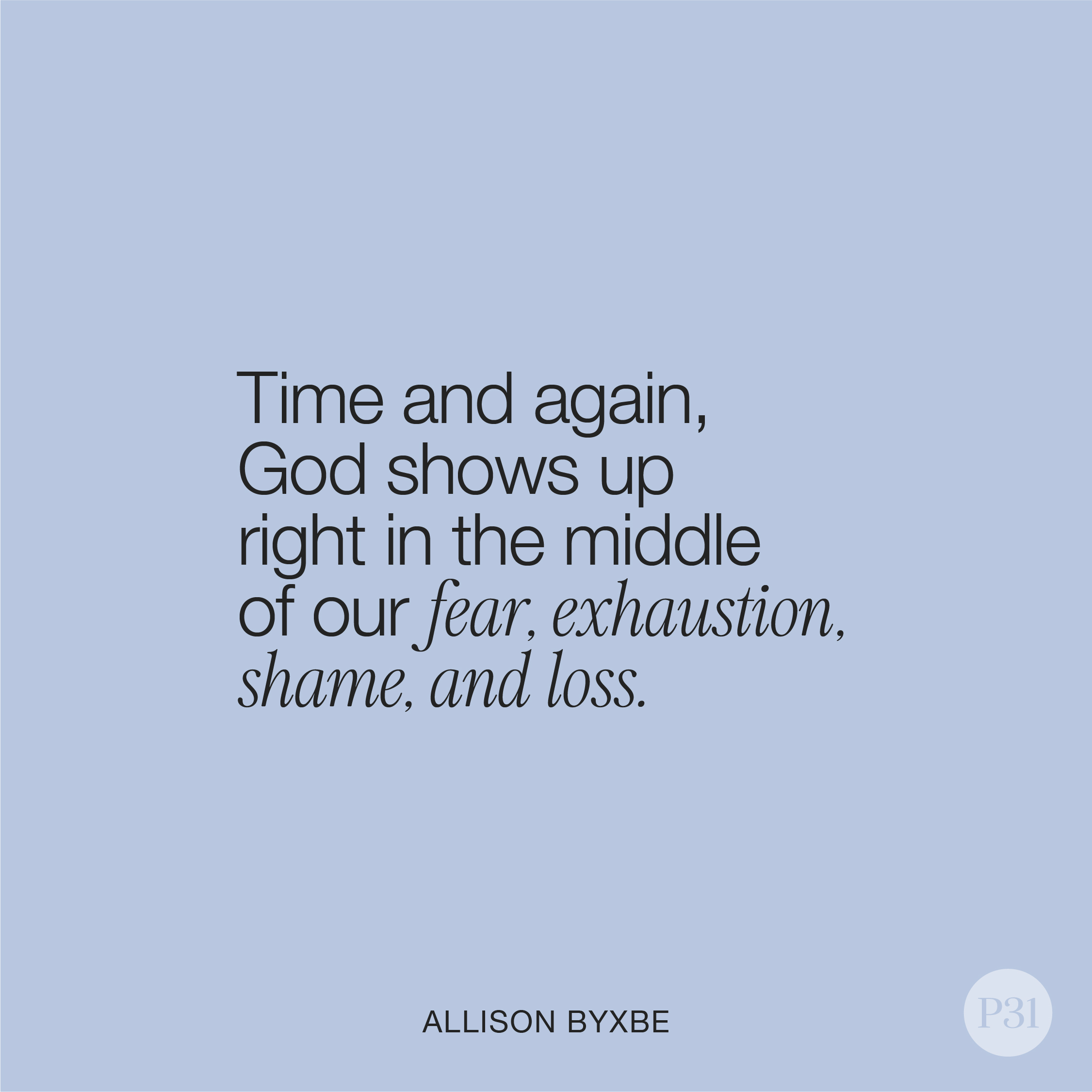 Time and again, God shows up right in the middle of fear, exhaustion, shame, and loss.