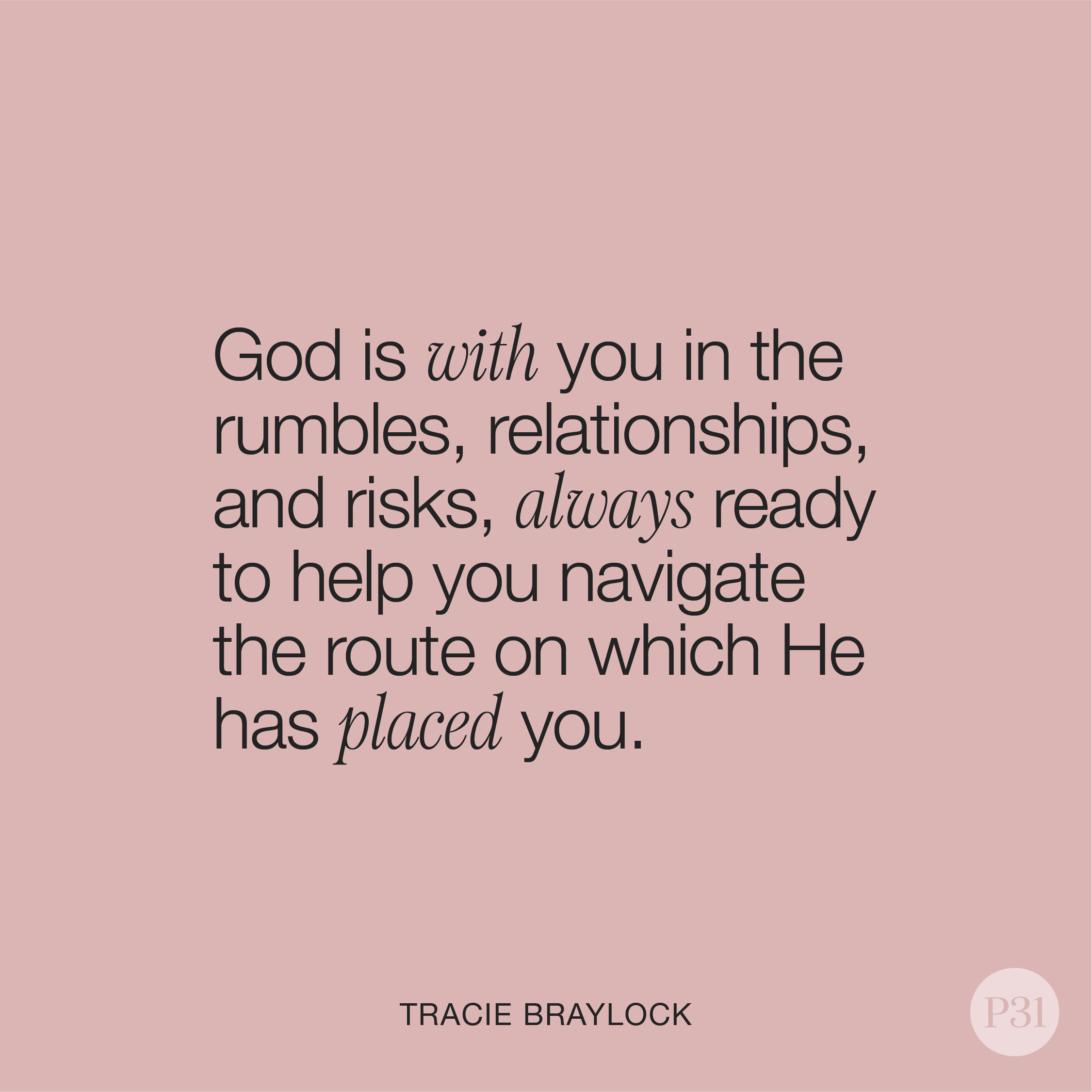 Friend, don’t dread the changes, doubt your decisions, or fear the future. Instead proceed courageously. God’s with you in the rumbles, relationships, and risks, always ready to help you navigate the route on which He has placed you.